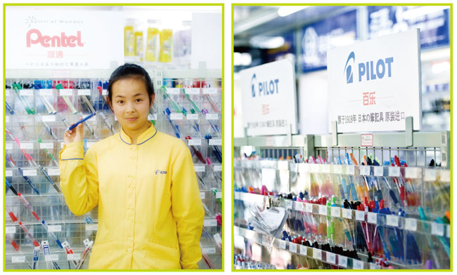 日本销量最大的两大书写工具顶级品牌:派通和百乐相继在鹰王办公各大连锁门店开设专柜。